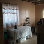 This house is situated in a silent neighborhood in Sebokeng. The outdoor area features extensive paving slabs. There are smaller lawns next to the house.